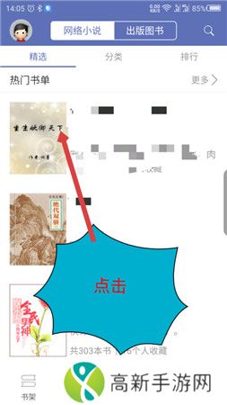 在打开的书库界面,选择一个想看的小说,点击打开阅读小说。如图所示
