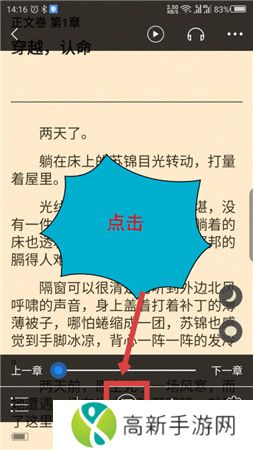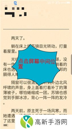 打开阅读界面后,在打开的界面,点击一下阅读界面屏幕中间的位置。如图所示