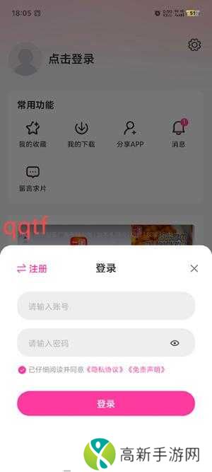 在个人中心点击登录/注册功能。