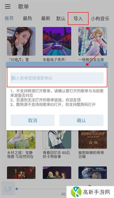 3、在这里点击“导入”,输入歌单链接和ID就可以导入歌单了。