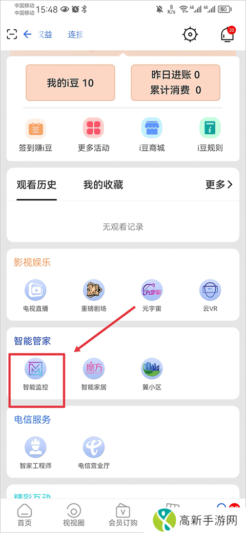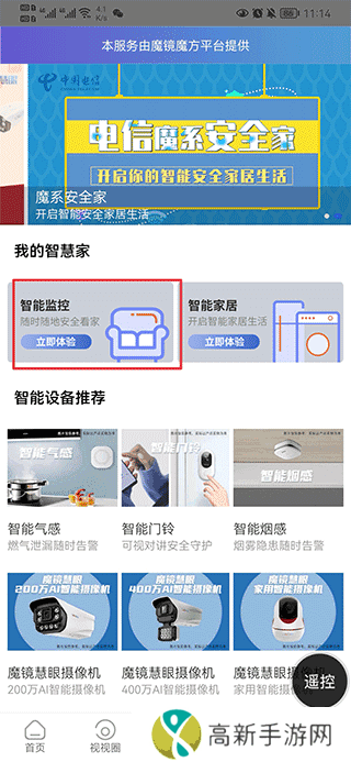 一、打开i视app,在魔镜魔方界面中点击智能监控