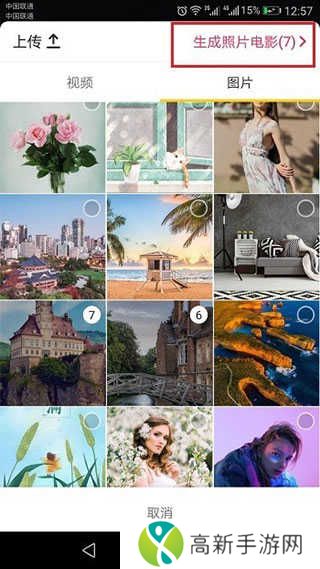 4、第四步选择要生成视频的图片,点击右上方的“生成照片电影”,需要注意的是选择照片要大于1张,如下图所示