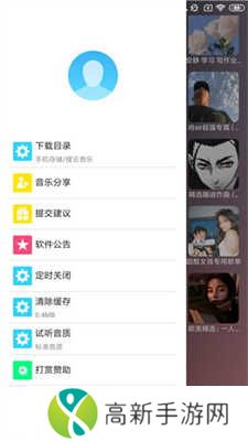 1、软件首页推荐热门、最新歌曲,点击侧边栏有一些功能可以用。