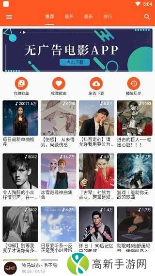 1、这里在导航栏有推荐、最热、最新、排行专区选择,你可以进入专区选择想播放的音乐。