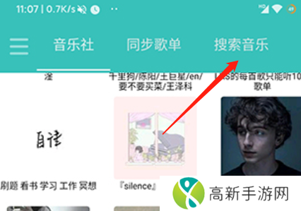 1、打开软件点击右上角的搜索音乐。