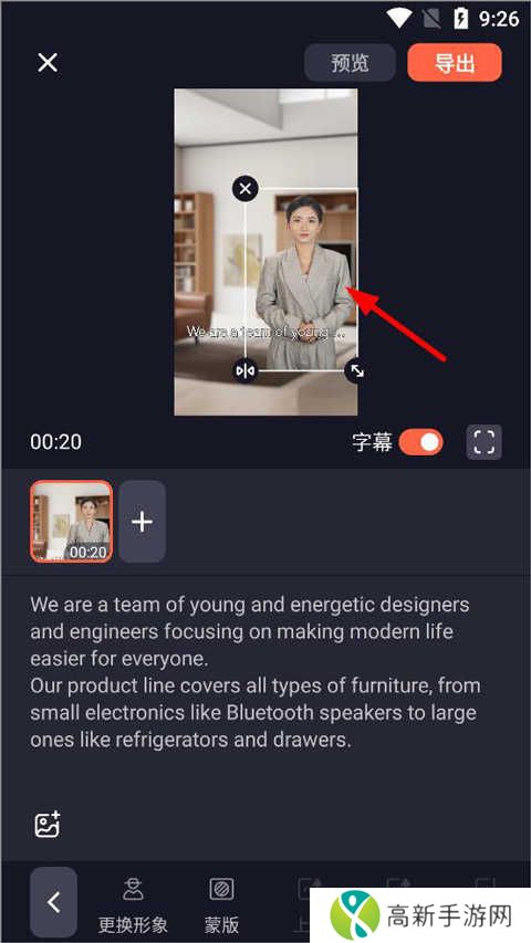 4、选择数字人后,用户可拖动数字人模板并调整数字人位置大小;