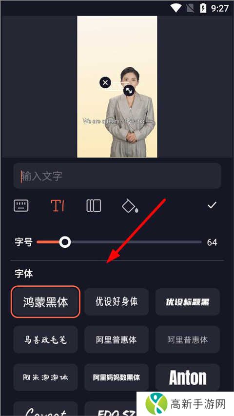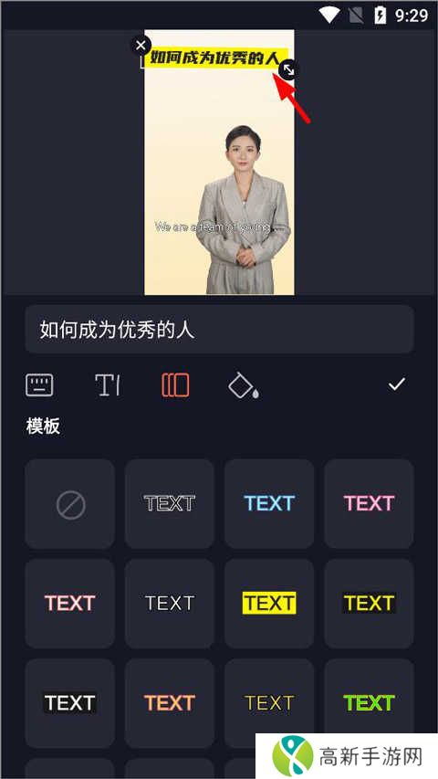6、打开文字版块,用户可修改模板文案,选择文字模板、颜色,调整文字大小位置;