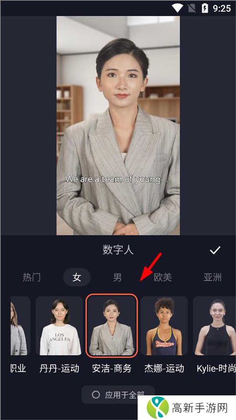 c、点击数字人列表右上角的【应用】按钮将数字人应用到视频。