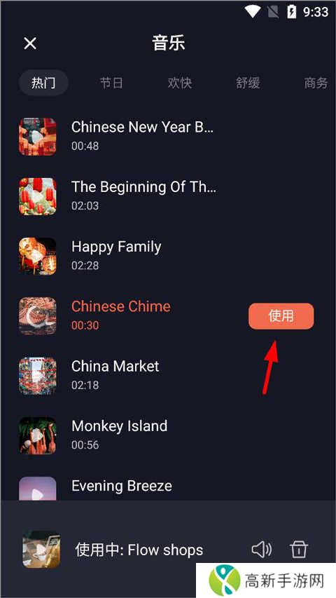 9、最后点击音乐为视频添加背景音乐,音乐添加好之后点击右上角导出即可保存。