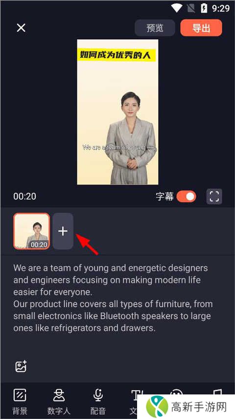 a、点击分镜栏的【添加】按钮添加分镜。你可以在新的分镜中使用新的数字人、配音、背景等元素。