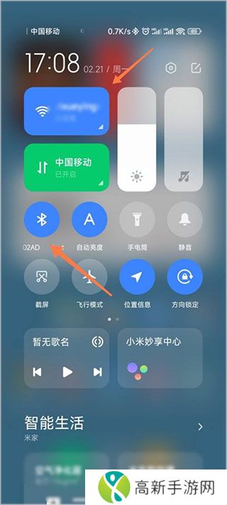 1、在通知栏中开启手机的【WiFi、手机网络、蓝牙】;