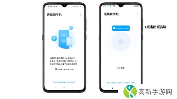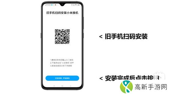 4、在旧手机中打开小米换机后,进入页面连接新手机。