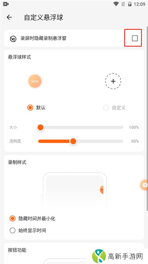 2、然后点击录屏时隐藏录制悬浮窗即可。