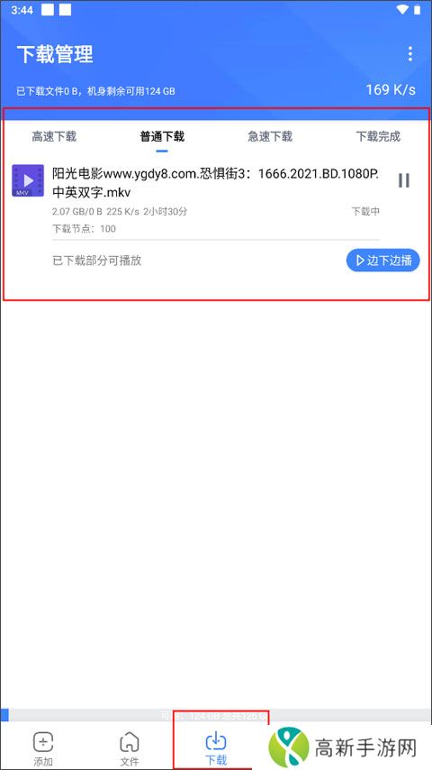 4、这时就会将下载进度显示到【下载】模块中,点击右下角的边下边播。