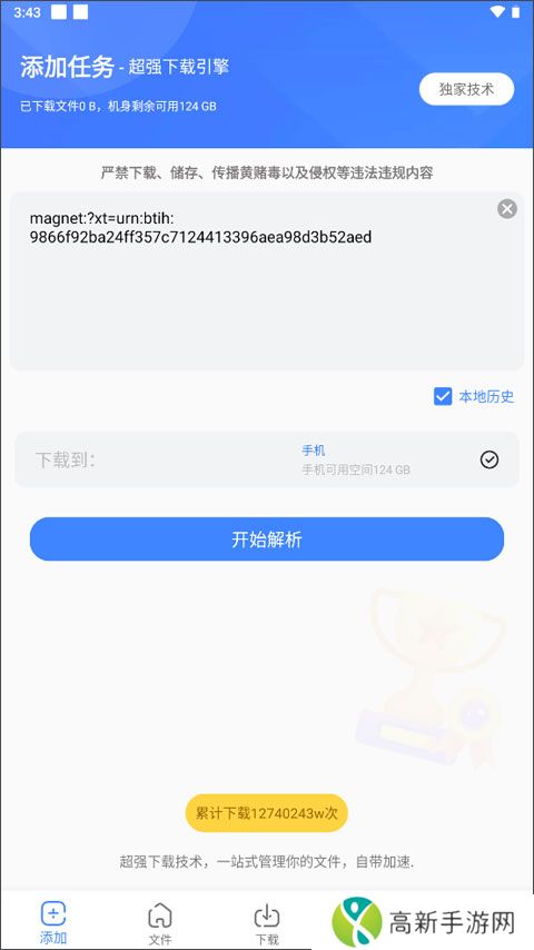 2、智能解析:支持多种格式的磁性链接和种子文件,自动识别和解析,轻松下载网络上的资源。