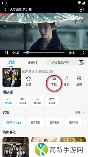 2、来到播放页面,选择下载按钮。