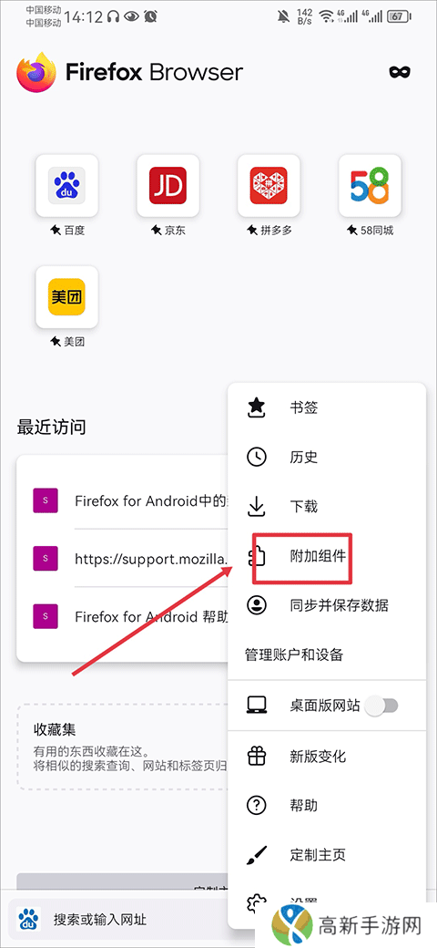 火狐浏览器怎么添加插件1、打开app后,首先在首页中点击右下角三点