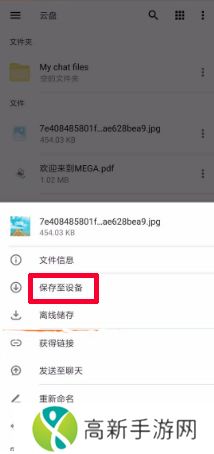 mega云盘怎么下载文件1、如果是下载自己的云盘文件只需要长按文件后在弹出的选项中点击【保存至设备】即可
