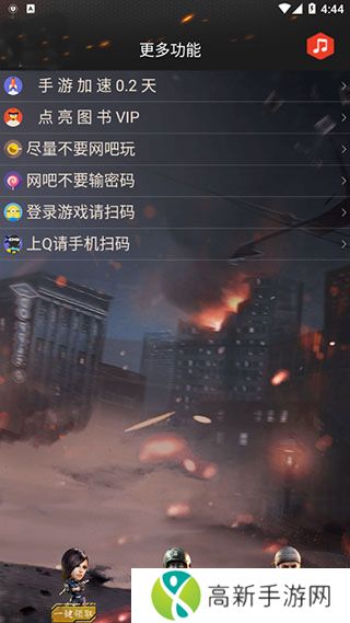 5、点击更多功能,点击即可获得点亮图书vip和qq等级手游加速。