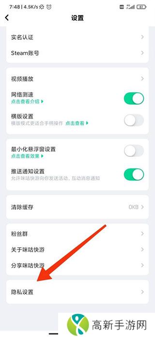 4、接着在软件设置页,我们往下滑动,找到隐私设置打开;