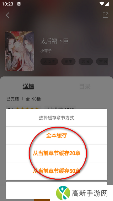 2、可根据自己手机的内存来选择缓存全本或者是前20章及50章。