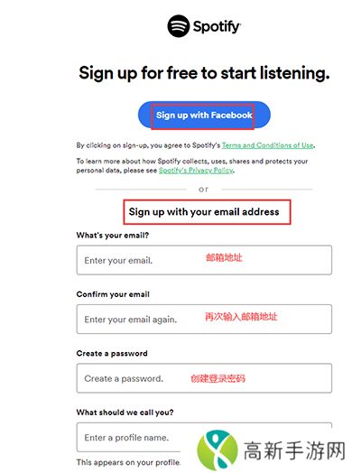 如果你选择电子邮箱注册,那么需要填写你注册用的邮箱账号,并创建spotify密码,然后,按照要求填写你的个人信息,包括昵称、生日、性别等。