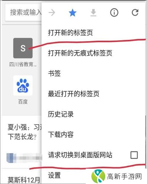 5、点击右上角有三个点,还可以设置切换到桌面版网页,打开新的标签等。