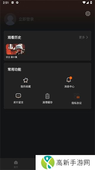 3、切换到我的页面可以查看历史、收藏、消息。