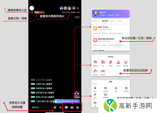 2、开播后可在主播直播界面查看直播相关信息和进行直播相关玩法