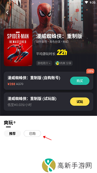 2、如果你已经购买了游戏,在已购栏会显示你的已购项目
