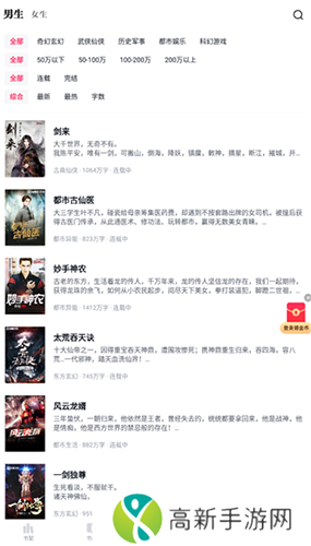 4、在分类板块中,有着奇幻玄幻、武侠仙侠、历史军事、都市娱乐、科幻游戏、古代言情、幻想时空、悬疑灵异、耽美同人、短篇美文等分类小说;