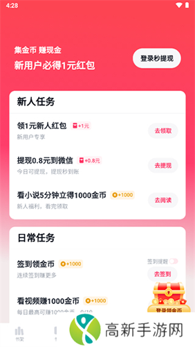 5、右下角有一个福利可以领取新人任务和日常任务赚钱和金币;