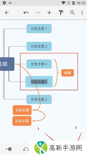6、类似于一个概要的功能,与前面一个不同的是,这种的是先添加一个同级的子主题,在点击概要,就如图所示。