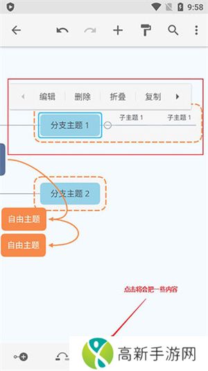 3、点中中心主题,添加子主题(类似于延伸当前主题)。