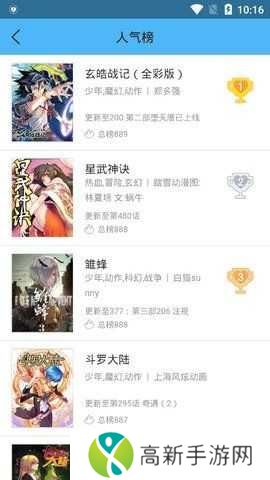 3、每天都会有一些热门漫画排名,所以你可以随时关注当前的热门漫画;