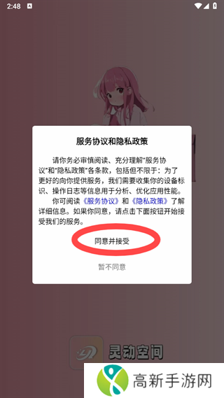 灵动空间app注册登陆1、先下载安装灵动空间app,打开软件后,记得要【同意并接受】服务协议和隐私政策。