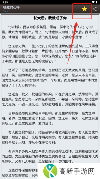 3、点击想要取消收藏的篇幅,如《长大后,我就成了你》,点击图示“黄星”位置