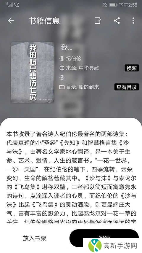 3、进入书籍信息界面,可以选择放入书架和阅读,选择放入书架后可看到已经在书架栏目中了,方便下次快速打开阅读,