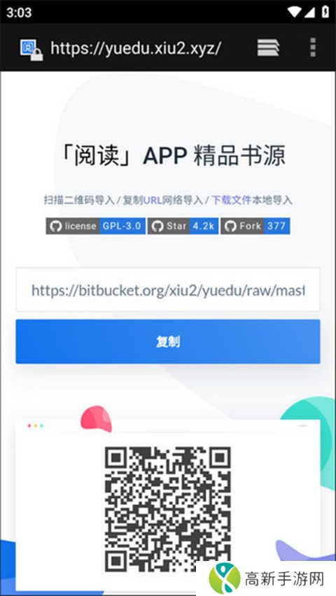 7、这里以【https://yuedu.xiu2.xyz】书源为例,首先点击复制里面的链接,