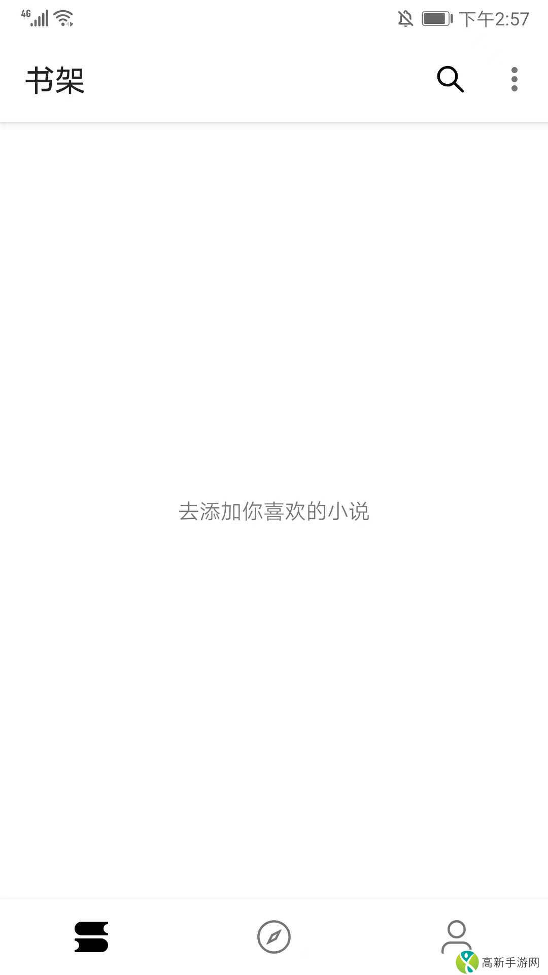 1、打开程序猿小说app,进入应用主界面,包括书架、书城和我的栏目,