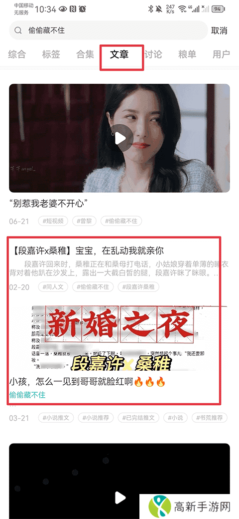 3、待搜索结果出来后,将页面选择文章页面,并在文章页面中寻找你想看的文章即可