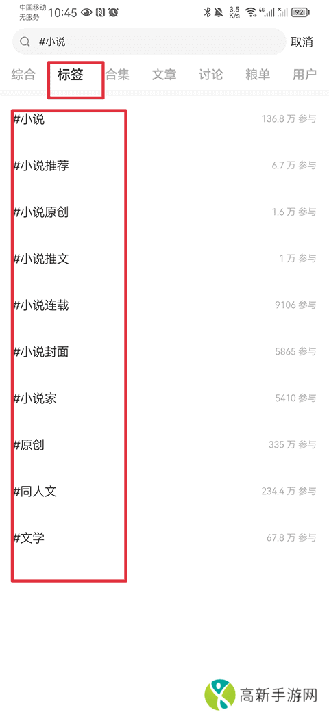 2、然后在标签页面中选择你感兴趣的小说标签,例如文学