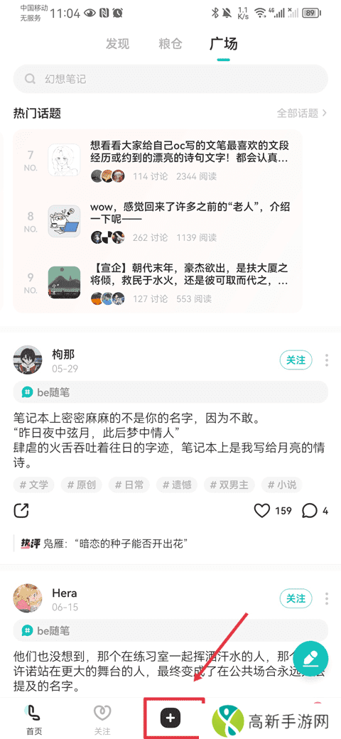 1、在老福特lofter小说软件下方栏目中点击黑色+号按钮