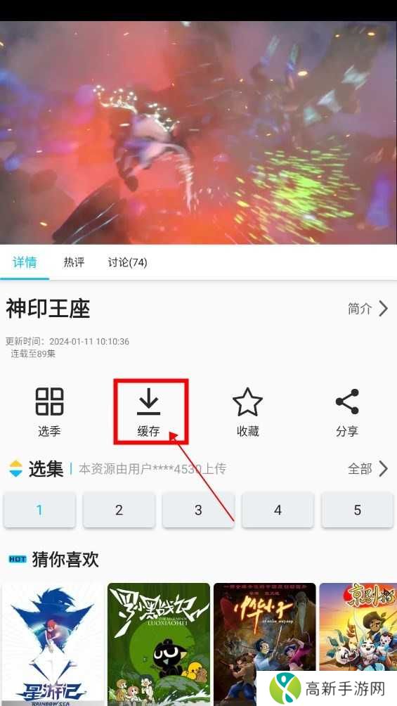 1、在视频播放页面,点击图中标注的缓存按钮,如下图: