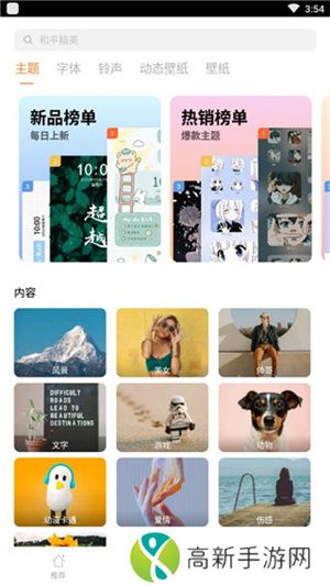 4、点击分类,可以分类查看,除了主题外,还有字体,铃声,动态壁纸等资源。