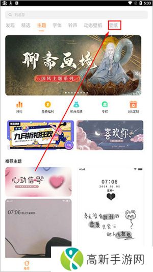 1、请各位在本站下载安装i主题,运行软件,点击上方选择壁纸;