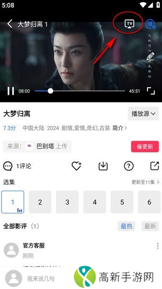 2、进入播放界面后,右上角有个TV按钮,如图所示,点击一下;