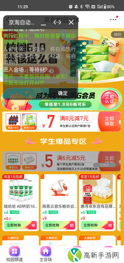 5、接下来便会开始自动脚本模式,帮你完成京东和淘宝的任务。