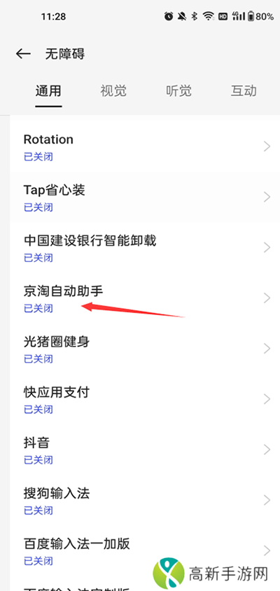 2、在无障碍服务功能栏里面找到《京淘自动助手》的无障碍开启。