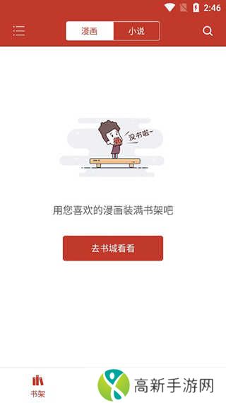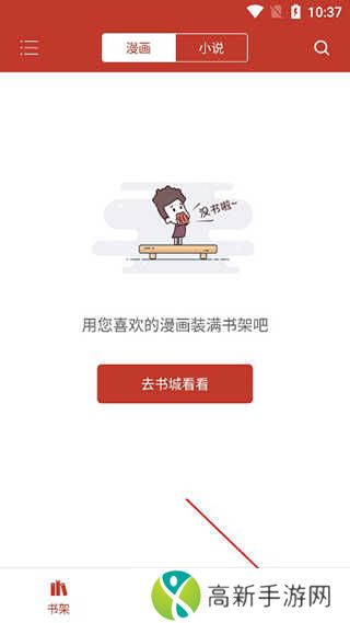 2、在书架当中暂时没有漫画,用户可以在书城当中寻找;
